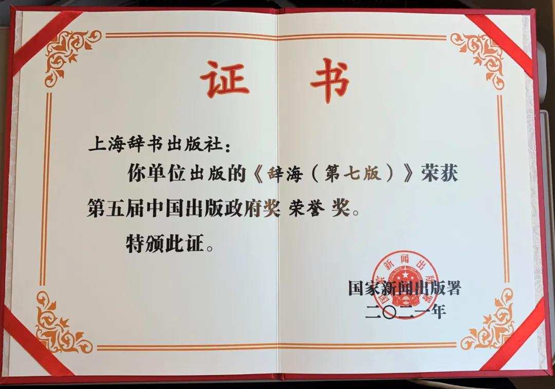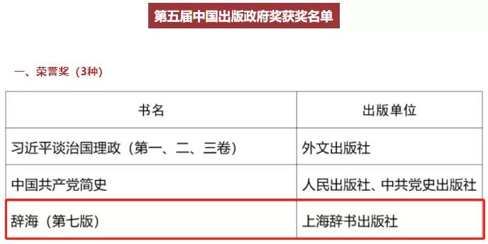 其中,我社《辞海》(第七版)荣获