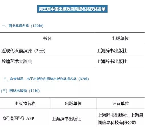 《问道国学》APP获音像制品、电子出版物和网络出版物提名奖!