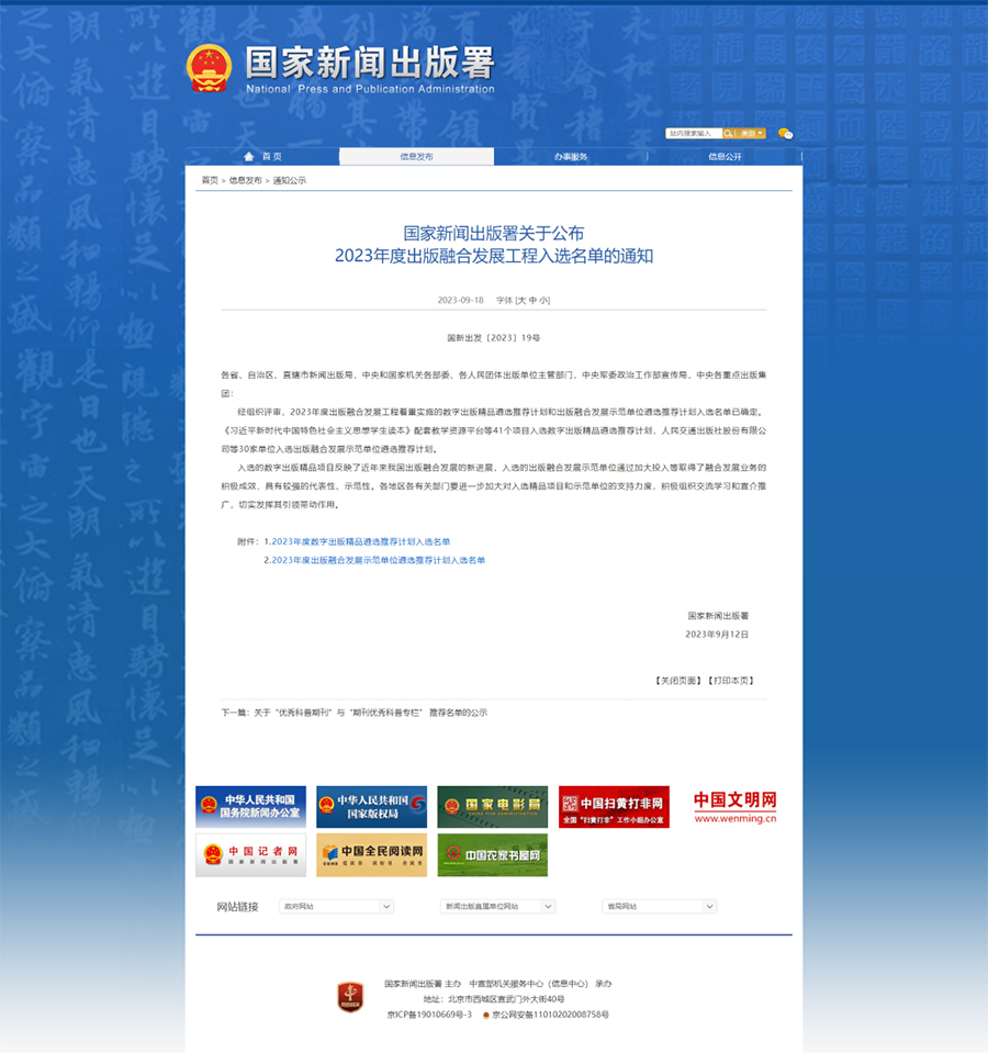 出版融合发展工程是推动出版业深度融合发展的一项系统工程,2023年度出版融合发展工程着重遴选一批导向正确、内容优质、创新突出、双效俱佳的数字出版精品和一批技术领先、融合度高、精品聚集、示范性强的出版单位。